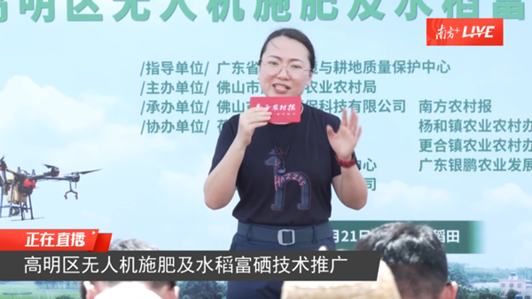 佛山市鐵人環保科技有限公司總經理助理潘云飛對“噴噴富”的作用進行介紹。她表示,添加了硒元素的硅肥能從作物硅硒養分調控入手,促進光合作用和有機物累積,并能促進作物根系生長,增強作物抗蟲、抗病、抗倒伏等能力,實現作物提質增產富硒;另一方面,硒是人體所需的微量元素之一,有抗氧化、增強免疫力等重要作用,具有較好的保健功能。“因此,選擇合適的葉面硅肥既能促進水稻良好生長,又能通過富硒米給消費者帶來健康功效,一舉兩得。”