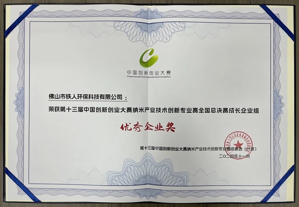11月16日-17日,第十三屆中國創(chuàng)新創(chuàng)業(yè)大賽納米產(chǎn)業(yè)技術創(chuàng)新專業(yè)賽全國總決賽在廣東粵港澳大灣區(qū)國家納米科技創(chuàng)新研究院(下稱廣納院)舉行。決賽匯聚了來自全國各地的50家納米科技企業(yè)同臺競技。經(jīng)過一番激烈角逐和專家評委的專業(yè)評審,最終佛山市鐵人環(huán)保科技有限公司(下稱鐵人環(huán)保)榮獲成長企業(yè)組“優(yōu)秀企業(yè)獎”。
